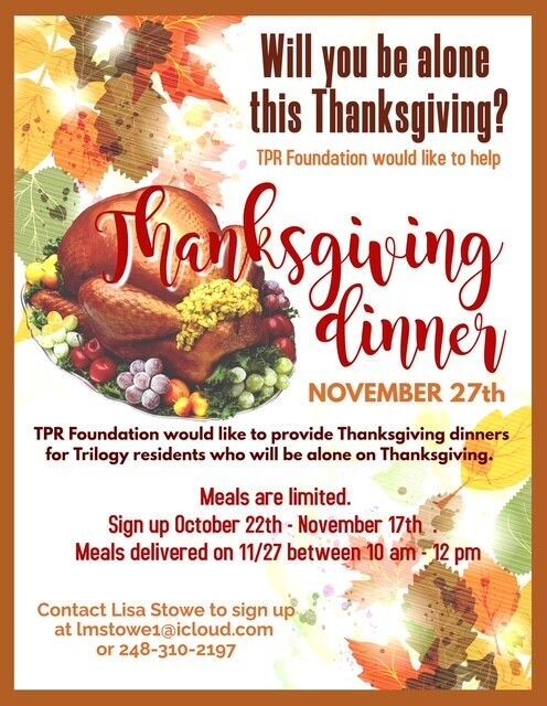 TPR Foundation volunteers will be delivering Thanksgiving meals to members of the community who will be alone for the day.